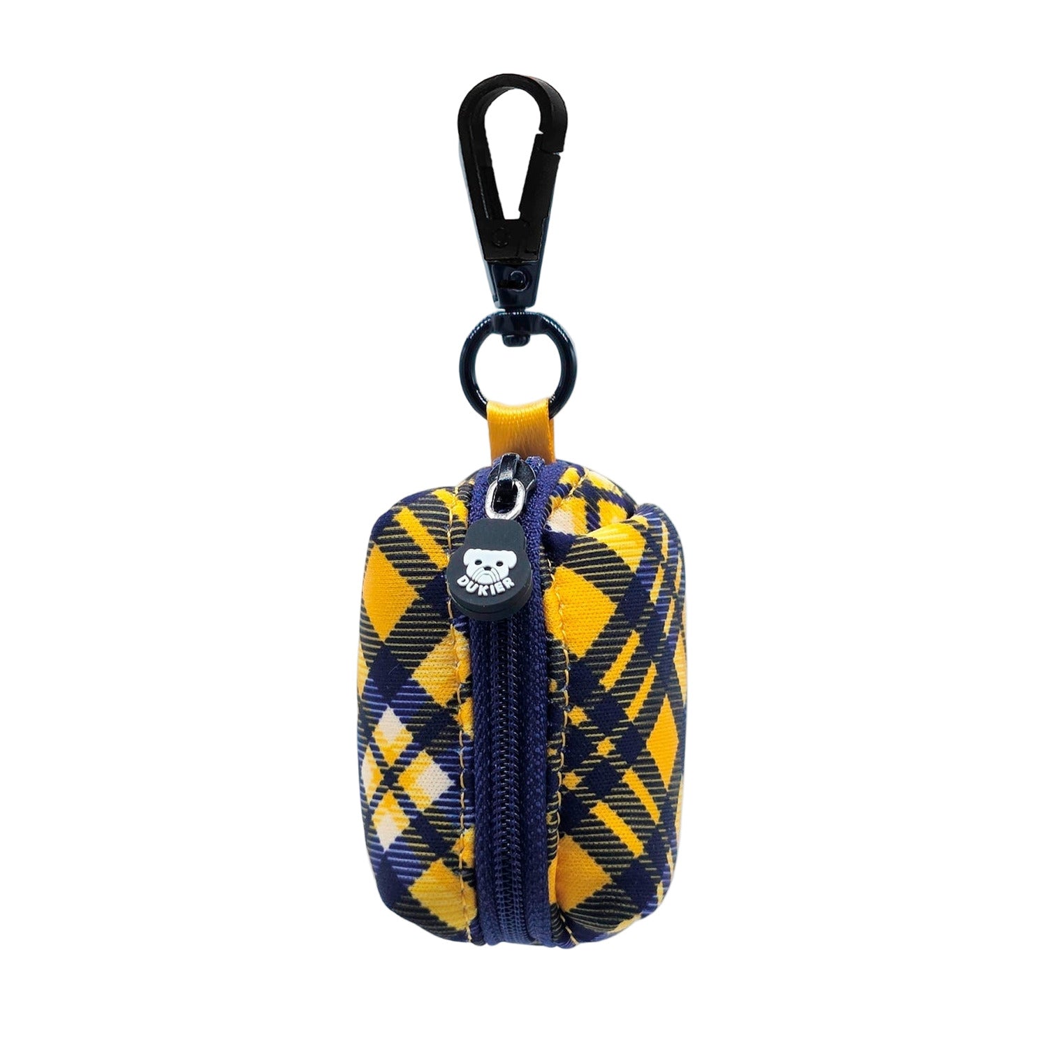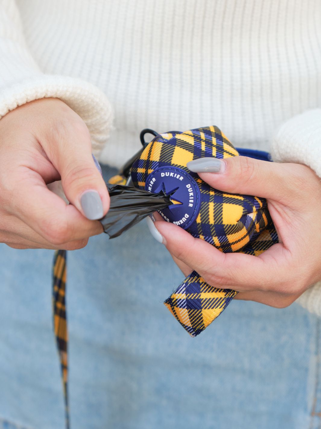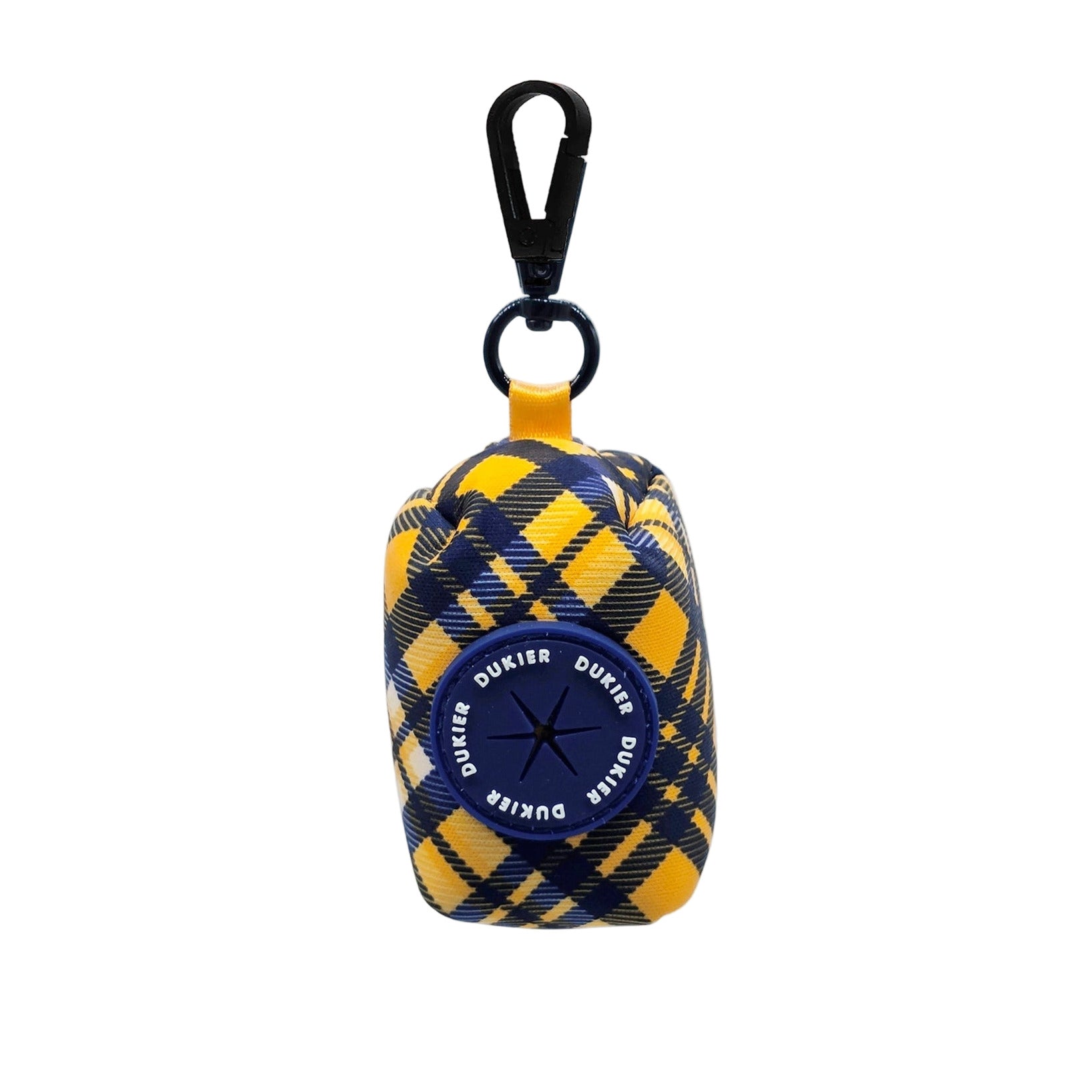 O Porta-Bolsas Xadrez Mostarda é um acessório leve, prático e funcional, ideal para transportar sacos higiénicos durante os passeios. Fabricado em neoprene, apresenta uma abertura em borracha que permite retirar os sacos de forma individual e cómoda. Inclui ainda um mosquetão que possibilita a fixação à trela, mochila ou presilha, mantendo-o sempre acessível.