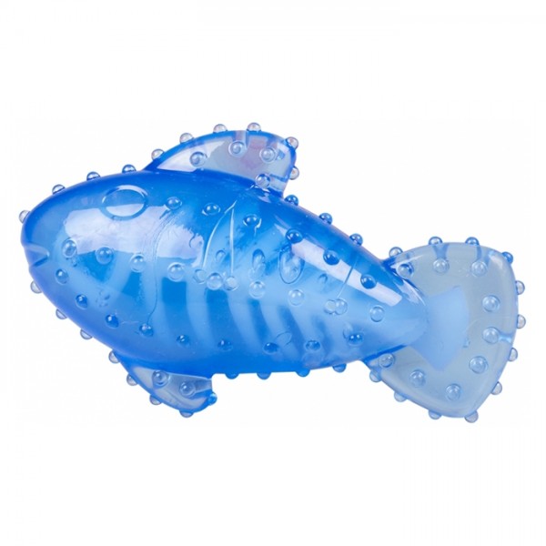 Medidas: 16,7 x 9,9 x 6 cm. Formato de peixe com textura estimulante.