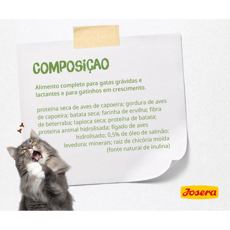 Josera Kitten GrainFree é uma ração completa indicada para gatinhos até 12 meses de idade e também para gatas gestantes ou lactantes - durante a amamentação, a quantidade de ração deve ser livre