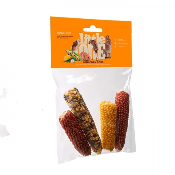 As mini espigas de milho são um snack saboroso e nutritivo para roedores. Podem ser oferecidas diretamente ao animal ou preparadas como pipocas para variar os momentos de snack.