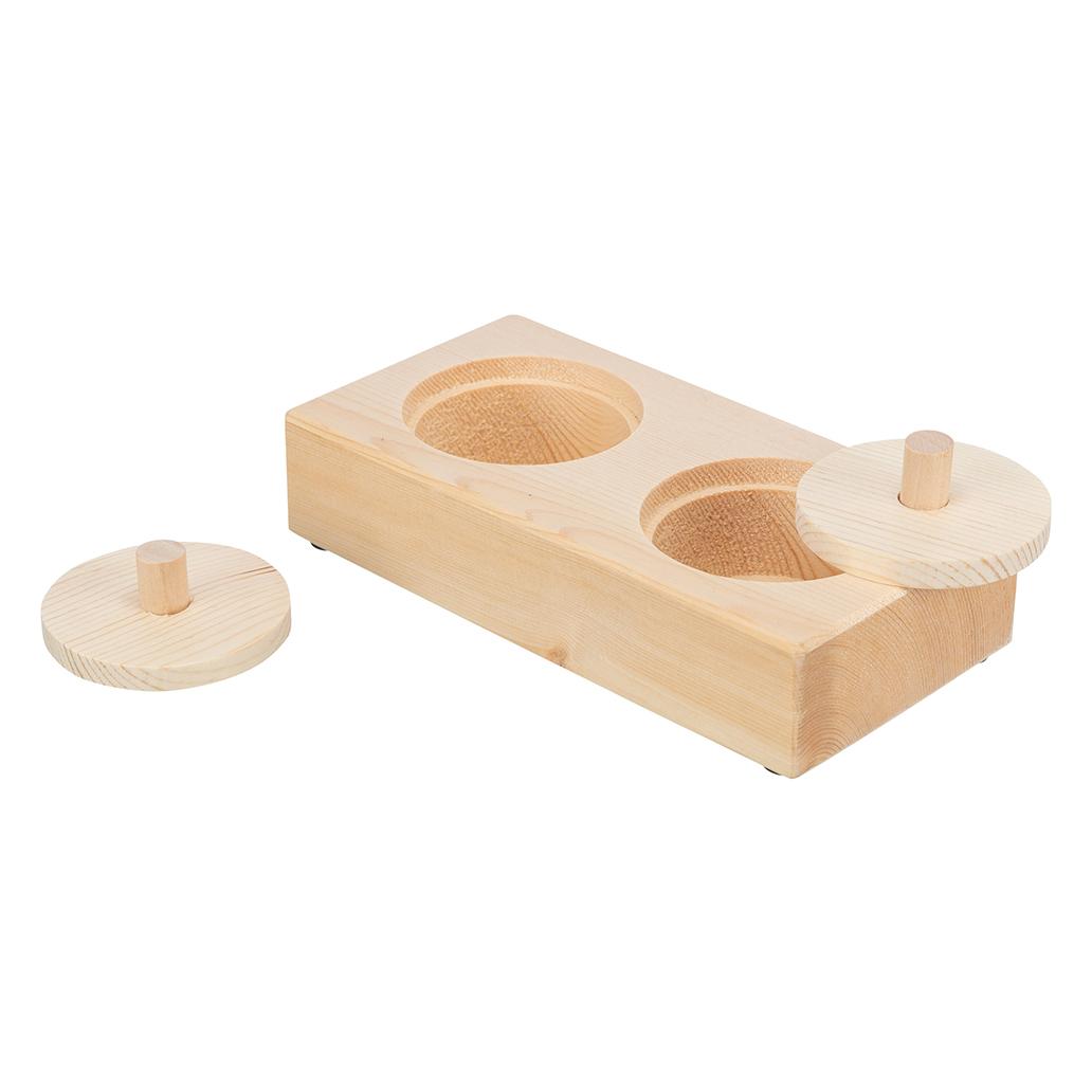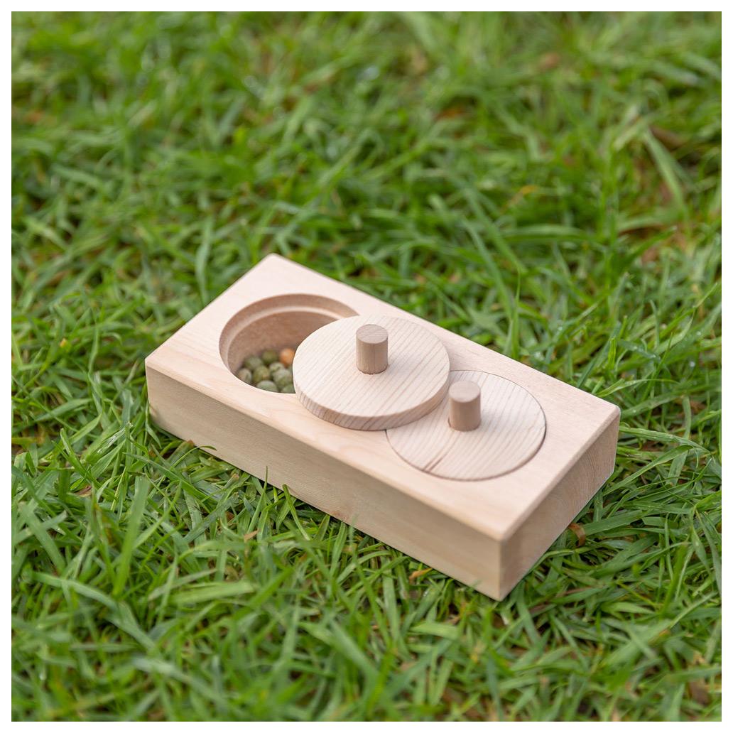 A Snack Box em madeira para roedores é um brinquedo interativo que estimula a mente e o comportamento natural de procura de alimento, tornando os momentos de snack mais desafiantes e divertidos.