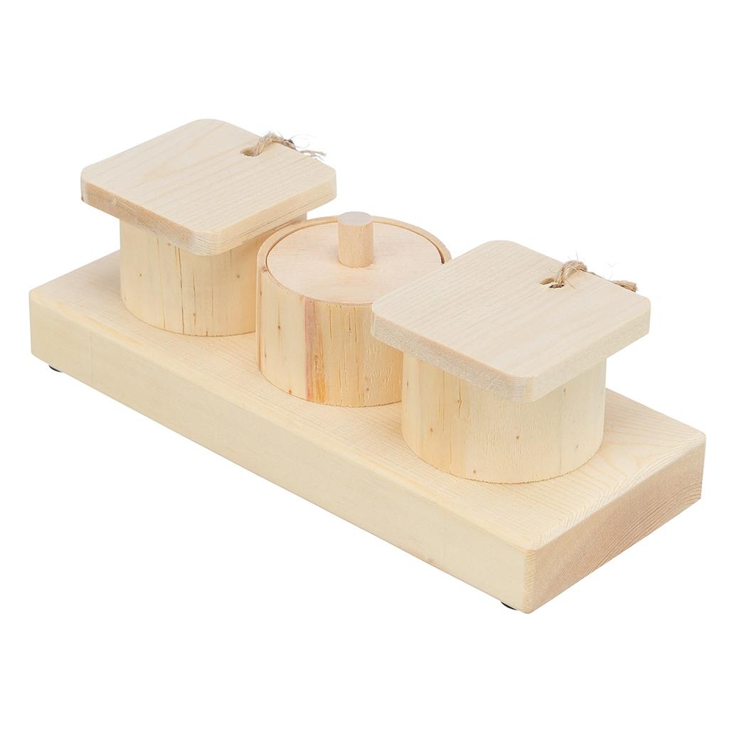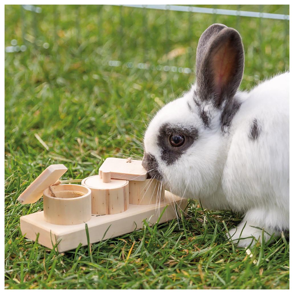O Snack Cups em madeira é um brinquedo interativo pensado para estimular a inteligência e o instinto natural de procura de alimento em roedores e coelhos.