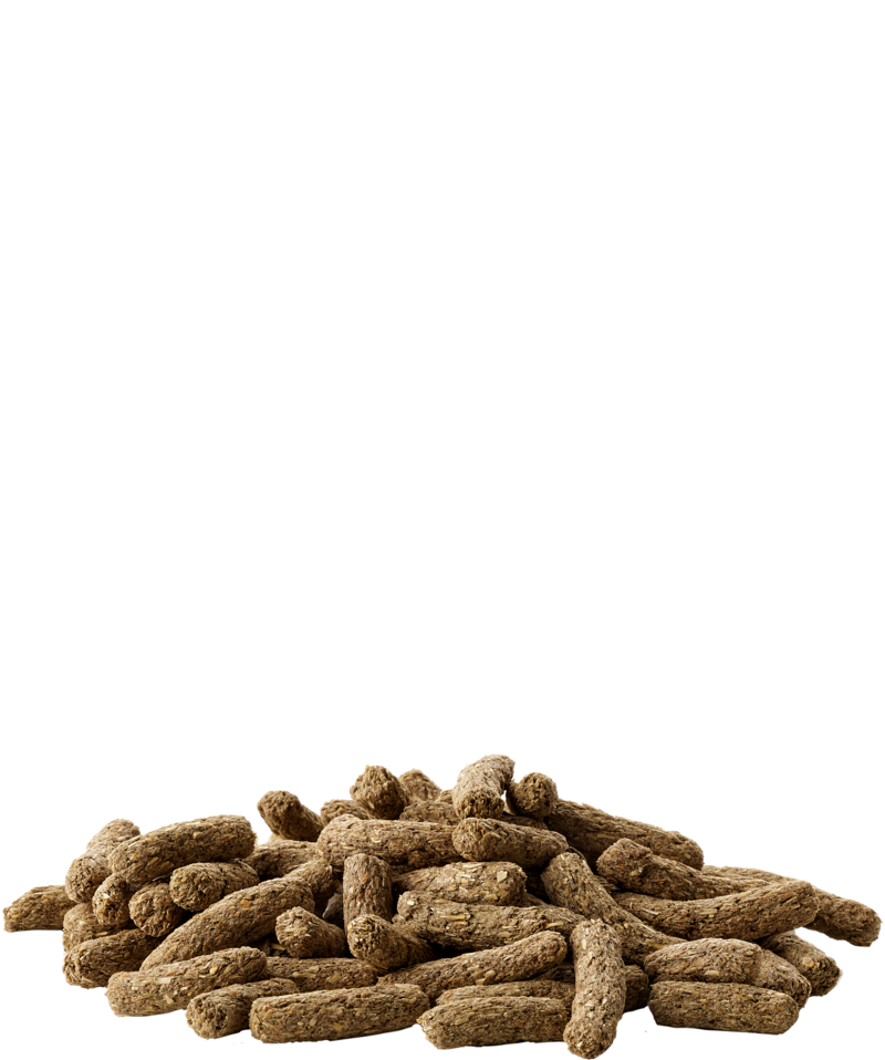 Composição: subprodutos de origem vegetal (erva-dos-prados 5,6%), frutas (bagas de sabugueiro 4,0%), substâncias minerais, sementes, ervas, fruto-oligossacáridos e iúca. Constituintes analíticos: proteína bruta 14,0%, gordura bruta 3,0%, fibra bruta 18,0%, cinza bruta 8,0%, cálcio 0,8% e fósforo 0,6%.